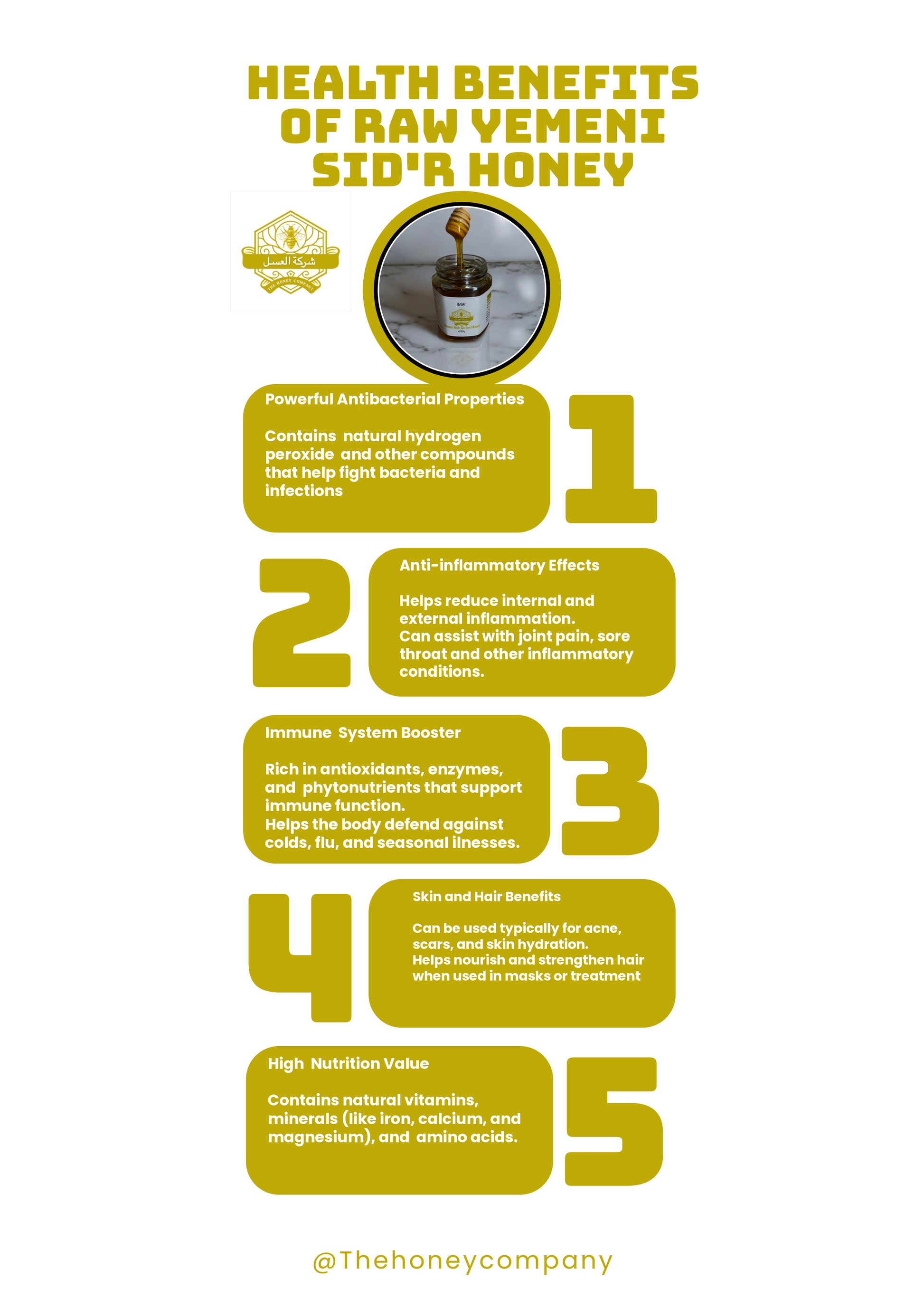 Yemeni Sidr Honey is one of the rarest and most sought-after honeys in the world, harvested from the ancient Sidr trees growing in the untouched valleys of Yemen. Known for its rich, luxurious taste and powerful medicinal properties, this raw honey is 100% natural, unprocessed, and packed with antioxidants, enzymes, and nutrients. Whether used for health, beauty, or simply enjoyed by the spoonful, Yemeni Sidr Honey offers a truly premium, healing experience straight from nature.